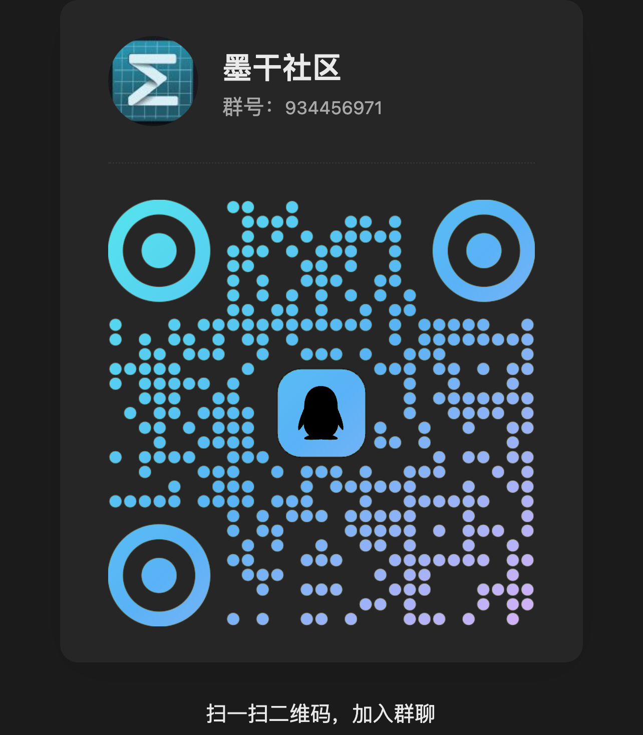 加入我们的社区 有任何问题或想了解更多使用技巧,欢迎加入我们的 墨干社区 QQ 群 ,与其他用 户一起交流经验!