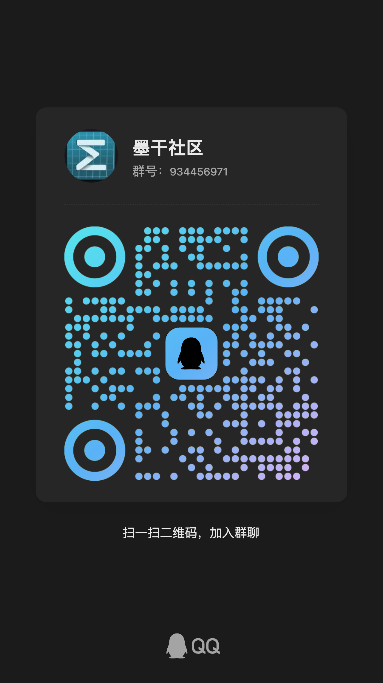 扫码加入墨干社区 QQ 群或加入 Discord 群组,与志同道合的伙伴在线交流,获取 Mogan STEM 的最新资讯。